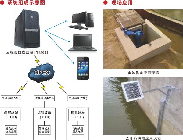 該裝置主要由感應(yīng)式水位傳感器、變送器、遠(yuǎn)程終端控制系統(tǒng)(RTU)、無(wú)線(xiàn)終端(DTU)及系統(tǒng)軟件組成。