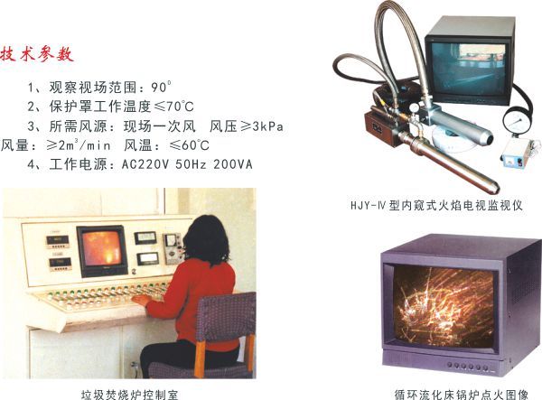 HJY-Ⅳ型內(nèi)窺式火焰電視監(jiān)視儀是用于監(jiān)測爐內(nèi)照度較低的循環(huán)流化床鍋爐及垃圾焚燒爐爐內(nèi)物料狀態(tài)的彩色工業(yè)電視系統(tǒng),該產(chǎn)品是我公司技術(shù)人員與光學(xué)研究所部分科技人員專門針對循環(huán)流化床鍋爐和垃圾焚燒爐而共同開發(fā)研制的,只要光照度大于10LUX的環(huán)境條件即能清晰成像,在國內(nèi)處于領(lǐng)先地位。對于循環(huán)流化床鍋爐,因?yàn)闋t內(nèi)為密封狀態(tài),在點(diǎn)火及投料過程中極易造成高溫或低溫結(jié)焦,而爐內(nèi)照度又很低,用國內(nèi)現(xiàn)有的爐膛火焰監(jiān)視裝置看不到爐內(nèi)物料狀態(tài)。如采用HJY-Ⅳ型產(chǎn)品可看到爐內(nèi)物料狀態(tài)并指導(dǎo)投料并及時(shí)發(fā)現(xiàn)結(jié)焦趨勢,從而避免結(jié)焦或投料過多造成點(diǎn)火過程中滅火。而垃圾焚燒爐,由于污染問題,爐體為密封式,投料后極易將火壓滅,即使在燃燒時(shí),爐內(nèi)照度也非常低,通常在300LUX以下,而國內(nèi)常規(guī)產(chǎn)品需在500LUX照度下才能工作。所以只有采用HJY-Ⅳ型產(chǎn)品,才能指導(dǎo)投料及探針插孔并在遠(yuǎn)離現(xiàn)場的操作室內(nèi)清晰看到爐內(nèi)的垃圾焚燒狀態(tài),從而實(shí)現(xiàn)安全經(jīng)濟(jì)運(yùn)行。